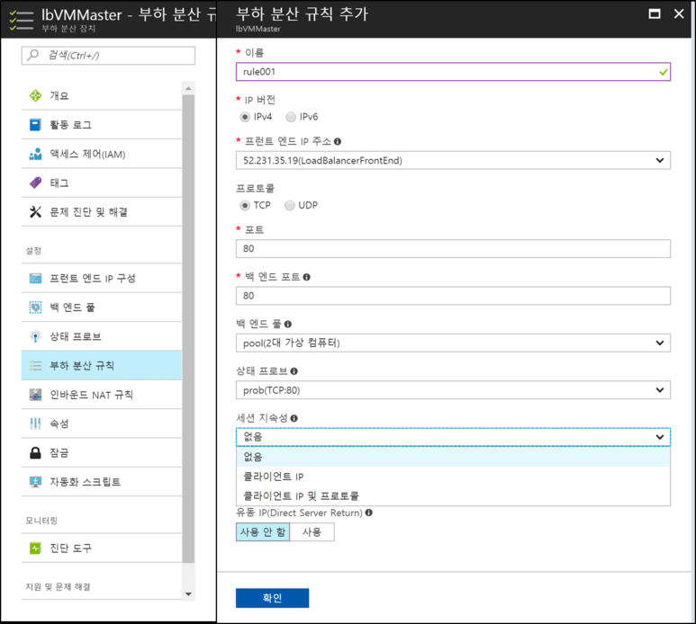 (참조 링크: https://docs.microsoft.com/ko-kr/azure/load-balancer/load-balancer-distribution-mode)
