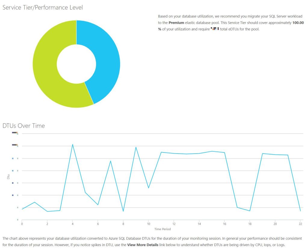 계산이 끝나면 아래와 같이 나오는데 이 결과를 통해서 AWS RDS에서 사용하던 성능 수준을 Azure SQL에서 그대로 사용하기 위해서 구성 해야하는 Service Tire/Performance Level을 확인 할 수 있다.